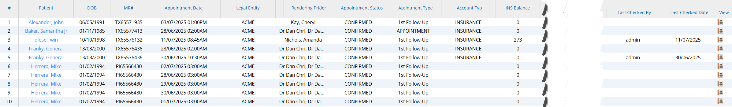 | Appt. Status | Checked in/ Checked out/ Canceled/Missed, etc. |