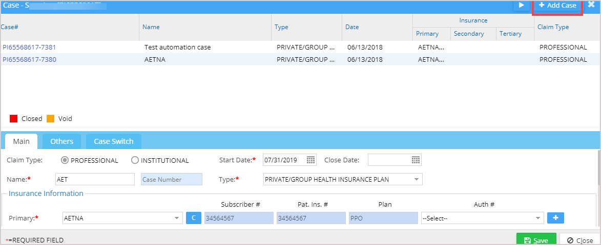 4. If none of the cases are suitable for the current visit, add a new case by clicking the