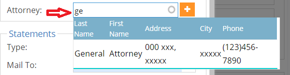 4. As you type the attorney name, a list of existing and matching attorney names will be shown as a drop-down list from where an appropriate attorney can be selected (see Image 3).