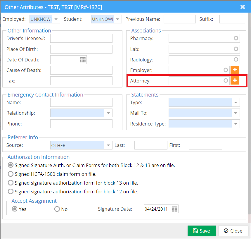 8. Click Save on the Other Attributes page to save the attorney for the patient.