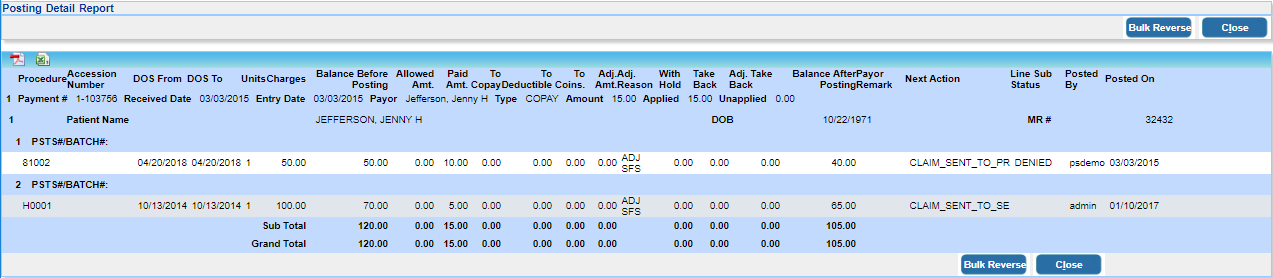 • If transferred funds remain unapplied (on account) on the receiving payment, those amounts are reversed back to the original payment