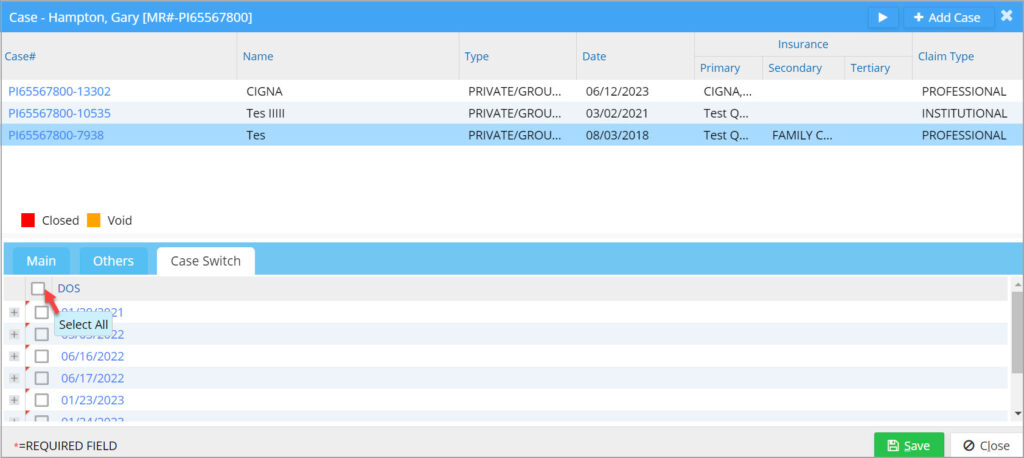 5. Case switching allows you to switch Date of Service (DOS) between the cases. Hence, it needs to identify the case to which the DOS should be switched.