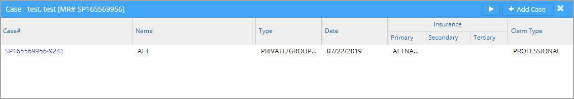 2. A cash case will be automatically added for patients whose account type is either self-pay or self-pay-ins (if the Auto-case Creation setting is enabled in the Billing Options screen).