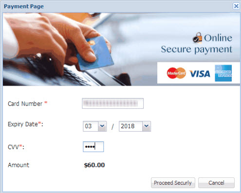3. Click on the Pay button to bring up the page to enter the credit card details.
