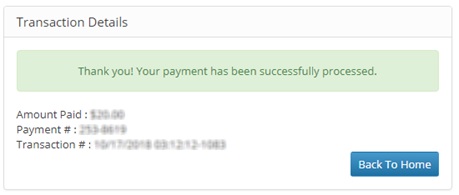 4. Once the payment is processed, the system creates a payment entry and returns the status along with the payment number, as well as a transaction number for future references.