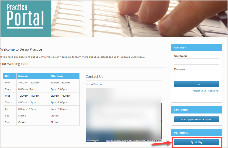 Quick Pay permits the patient to make a payment without having to log in to the patient portal. Follow the steps below to make a quick-pay.