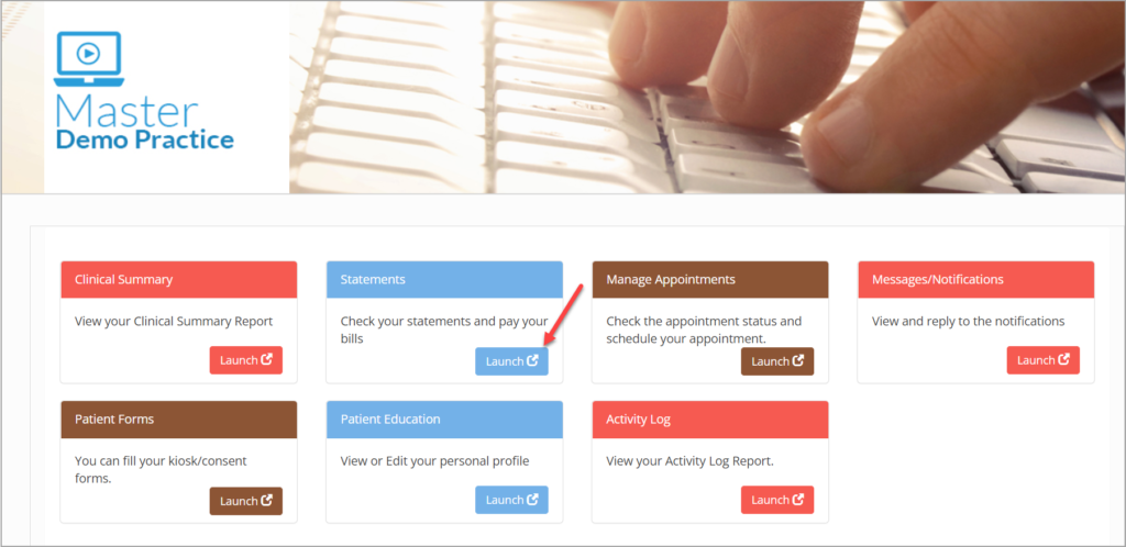 Through the credit card payment functionality, patients can view statements online and pay their outstanding balances from the portal. The system will create a payment entry in the billing module. Credit card payment functionality for the patient portal is an add-on service. Please contact Sales/Support for more details.