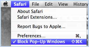 Select the Safari menu at the top of the screen. Uncheck the “Block Pop-Up Windows” option on the drop-down menu.