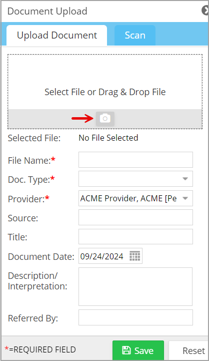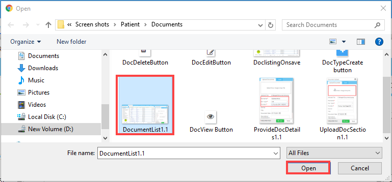 All the documents and images of a patient are available in the Documents tab of the Patient Demographics page. Categorization of documents aids in easy search and retrieval. To access the documents/images of a patient, follow the steps below.