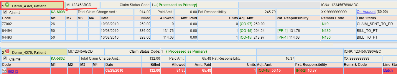5. Allowed Amount (ERA) will be red-texted if less than the calculated allowed amount based on the fee schedule and orange-texted if it is higher. Also, mouseover on ‘Allowed Amt (Fee Schedule)’ will display per unit allowed amount and the calculated allowed amount based on the number of units.