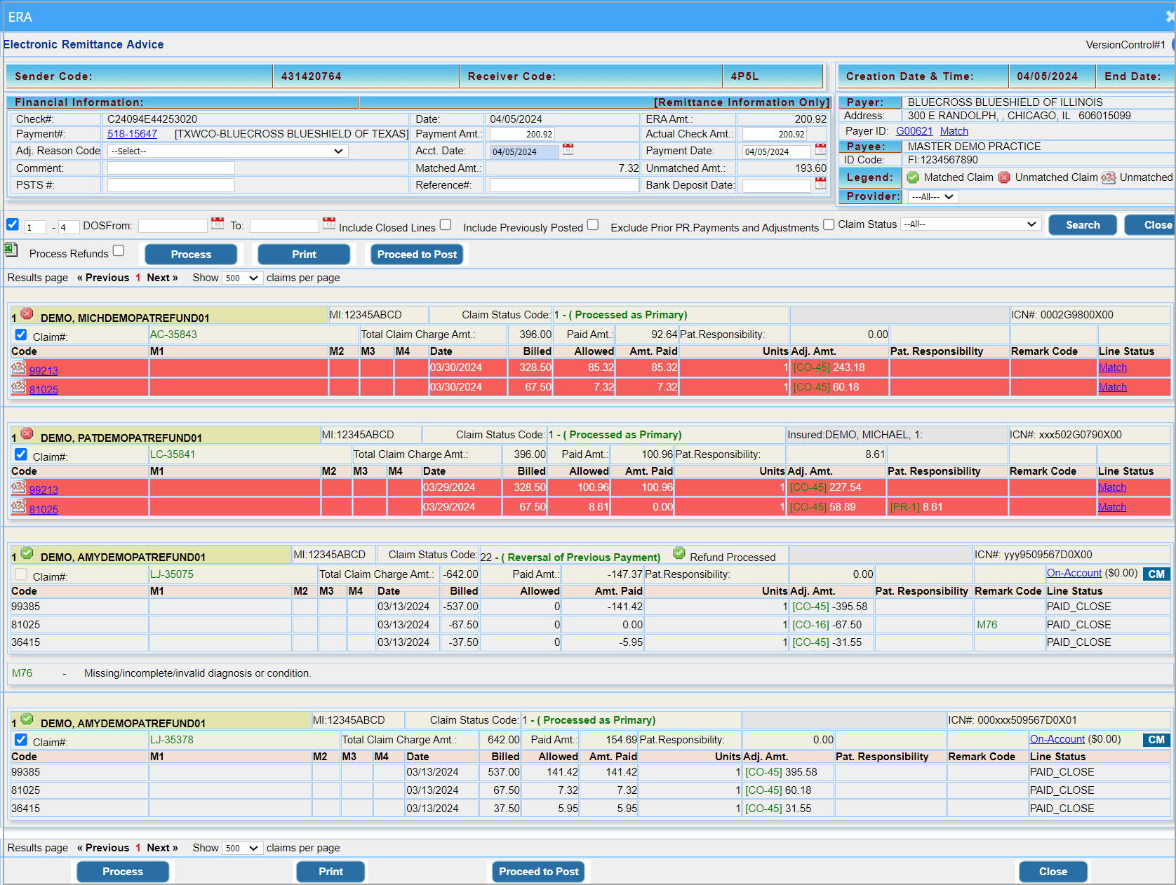 button to create a payment entry and to match claims. Once processed, all matched claims will have a