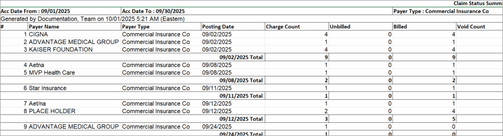 | Payer Type | Automobile, Commercial Ins, etc. |