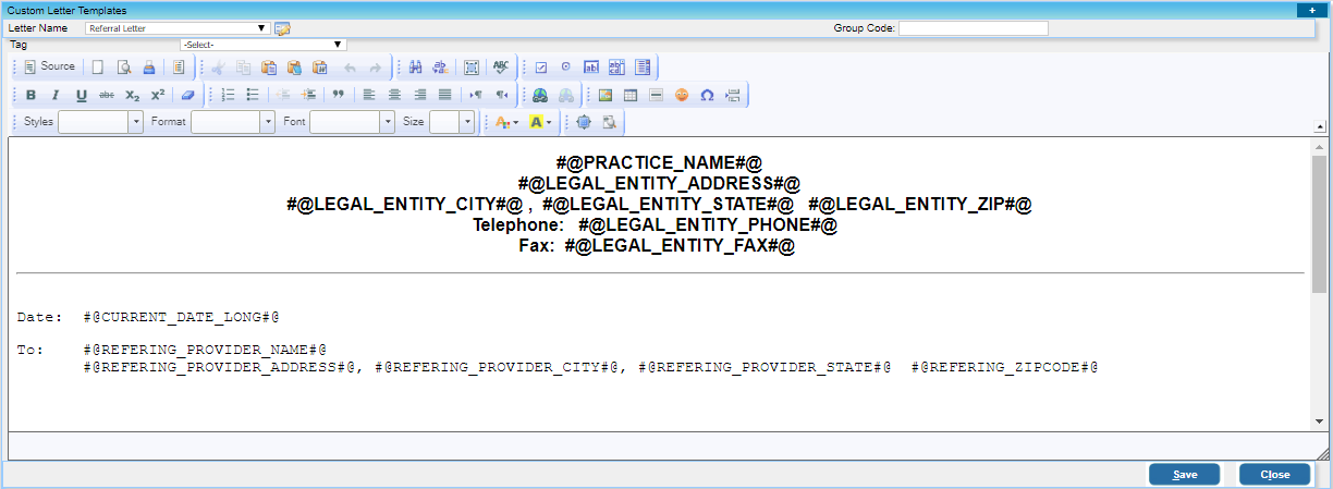 To generate a letter from the scheduler, it must first be created and saved in the Letter Master under the group code PATIENT_ENCOUNTER_FORMS. Only letters associated with this group code will appear in the scheduler for selection. Once saved, these letters can be generated directly from the scheduler as needed.