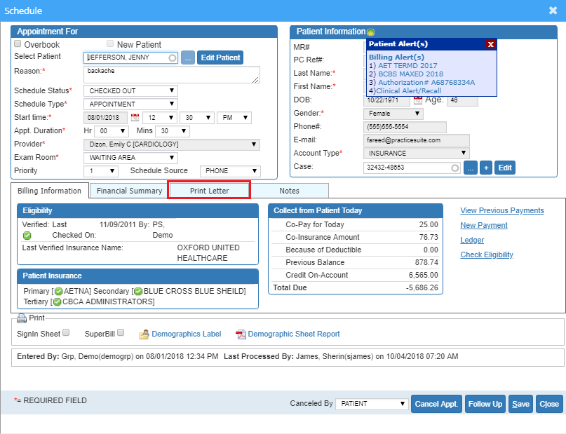 9. Click on the Save button to generate the letter and save the changes. Image 5 is a sample letter generated from the scheduler.