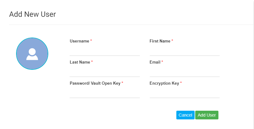 Fill in the Username, First Name, Last Name, Email, Password, and Encryption Key.