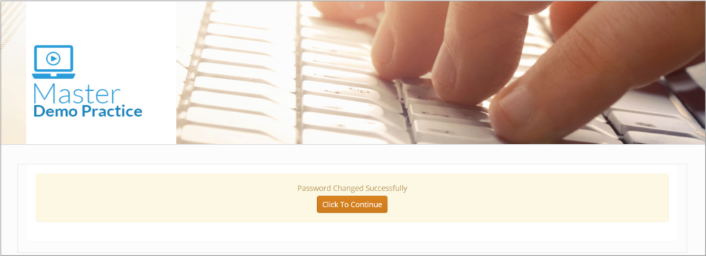 6. You will get a confirmation screen indicating that you password has been changed successfully as in the Image below.