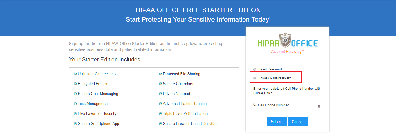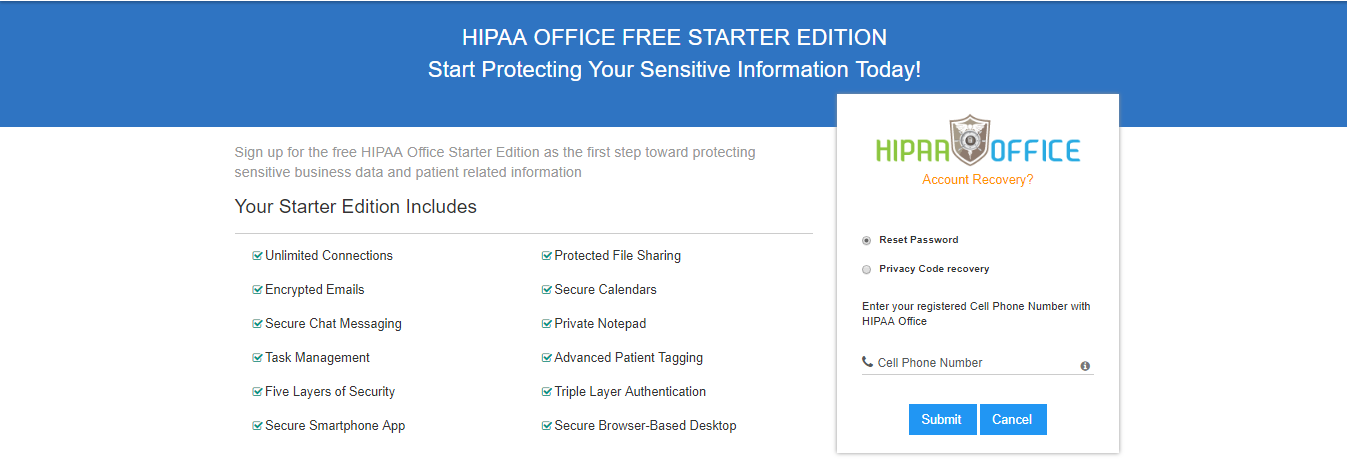 button. A new password will be now sent to the email ID specified when signing up the HIPAA Office account.