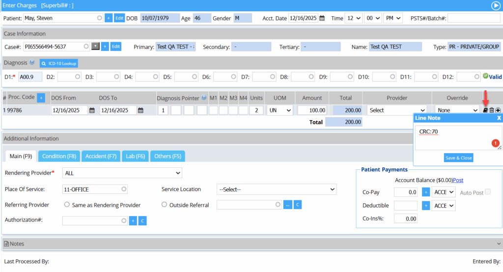 Putting CRC:70 at line note will populate the CRC segment in 2400 loop.