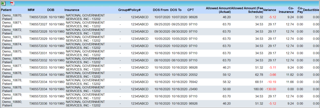 2. The allowed amount is the actual allowed amount entered at the time of posting. If the allowed amount entered was ‘0’, then for reporting purposes, the allowed amount will be taken as the difference of the charge and adjustment amounts.