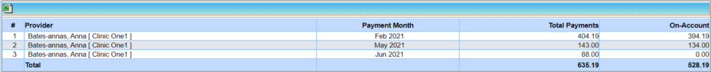 I25 report gives the provider and month-wise paid and on-account break-up.