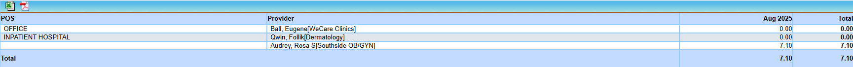 J20 report provides month-wise payment totals by provider and place of service.