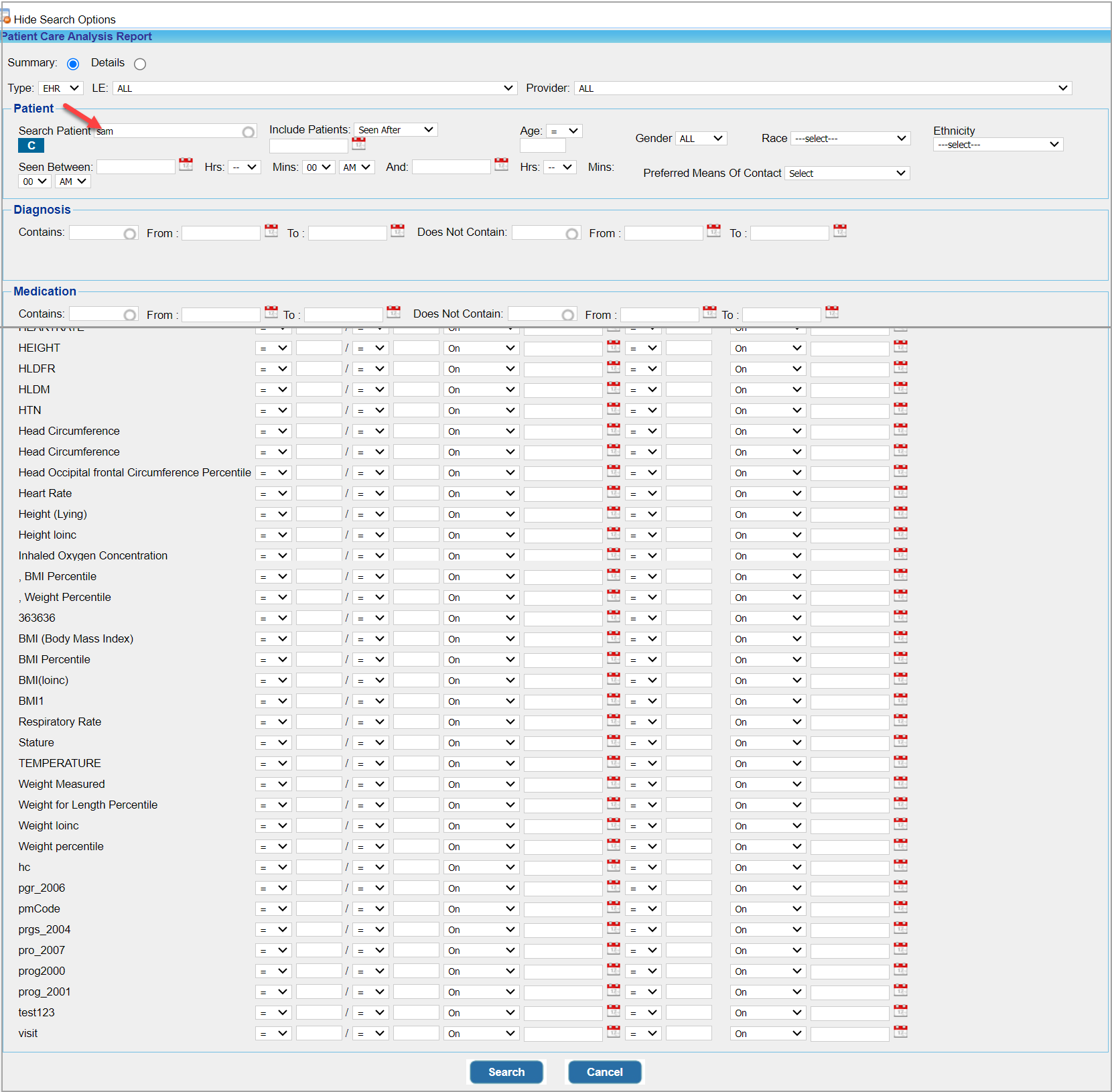 The search parameter List of K3 report enables users to search patients by their body vitals like BMI, BP, Body temperature, heart rate, height, weight, etc. It can as well be used for searching patients depending upon their face sheet parameters, lab orders, lab results, radiology, diagnoses, etc.