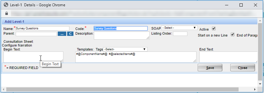 7. Enter the Name as ‘SURVEY QUESTIONS.’ Fill up Code other fields and click on Save. To create the questions, click on the Level 2 button