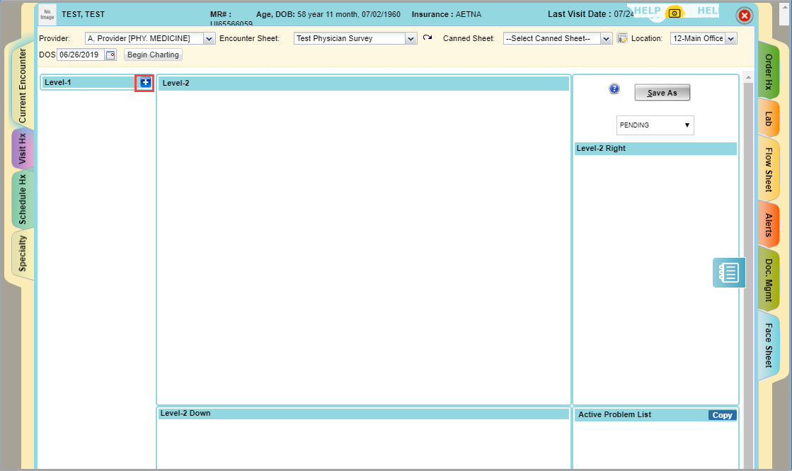 | If the question is “New Patient?”, this should be updated as Level 2 Item Name and QUESTION should be entered in the Code field. The options ‘Yes’ and ‘No’ should be added as Level 2 downs. |