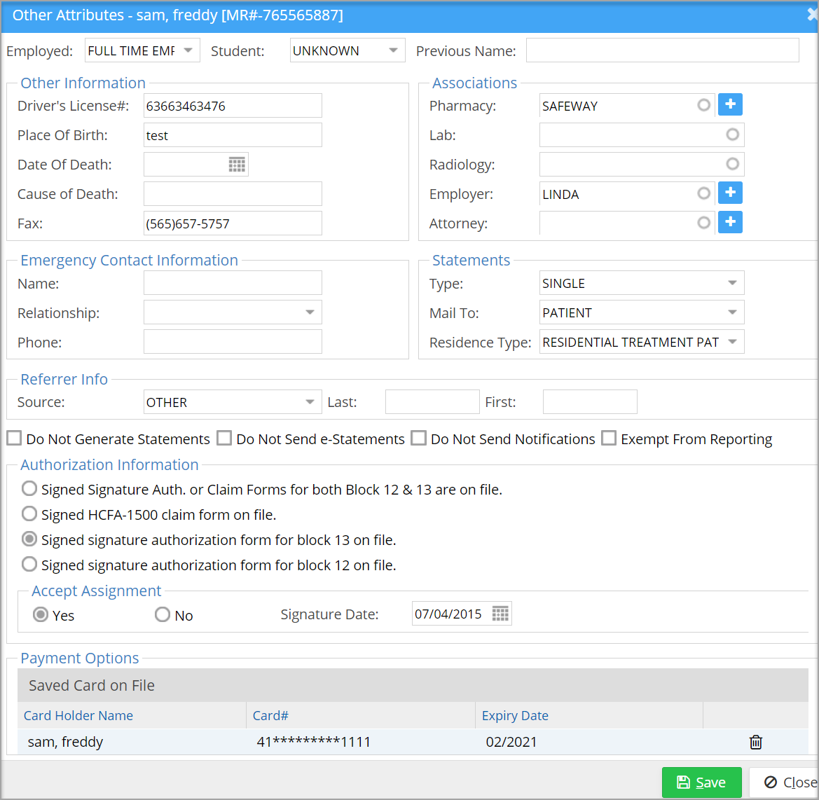 The Other Attributes page of the patient demographics contains miscellaneous information of a patient.