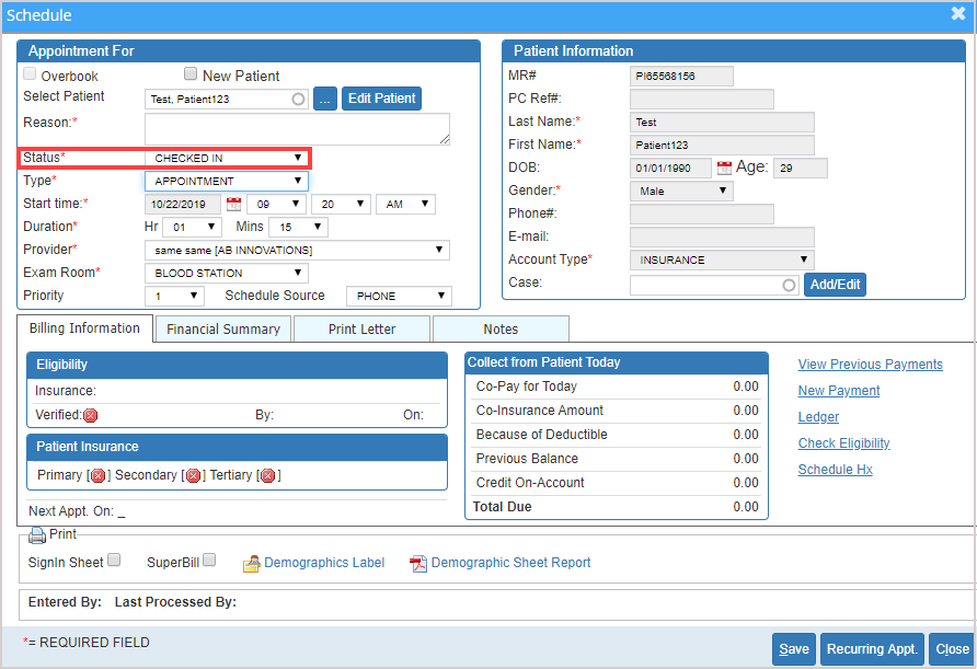 Marking a Patient as ‘Checked-In’ in the Scheduler