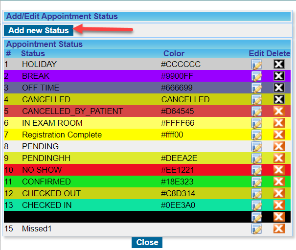 on the top of the screen. Click on the Appt. Status tab and hit the