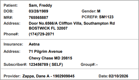 The patient demographic label has been redesigned with dedicated sections for patient, insurance, and provider information for improved clarity. As part of this update, the SSN and Practice Name fields have been removed, and the current date is now displayed at the bottom of the label.