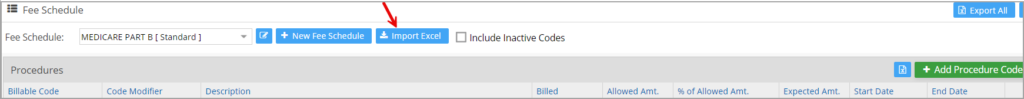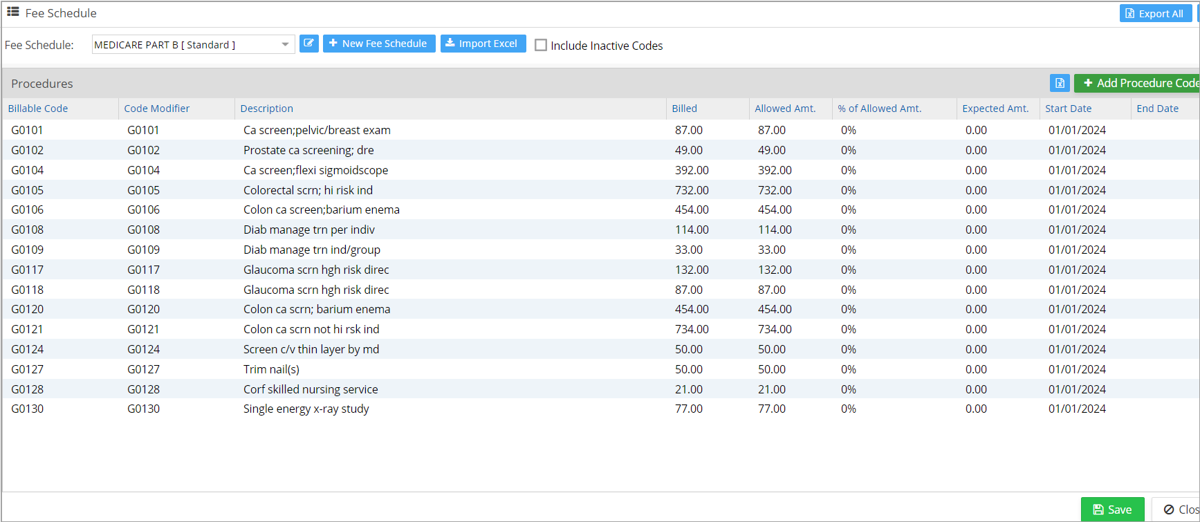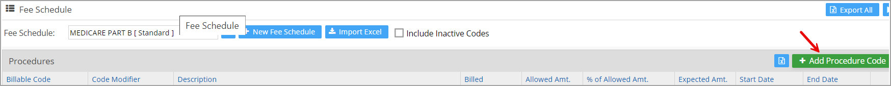 Note: Users can add, edit, and delete procedure codes from the standard fee schedule. To learn more, click here.
