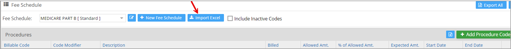 Step 1: Click the Import Excel button to download the Fee Schedule sample file.