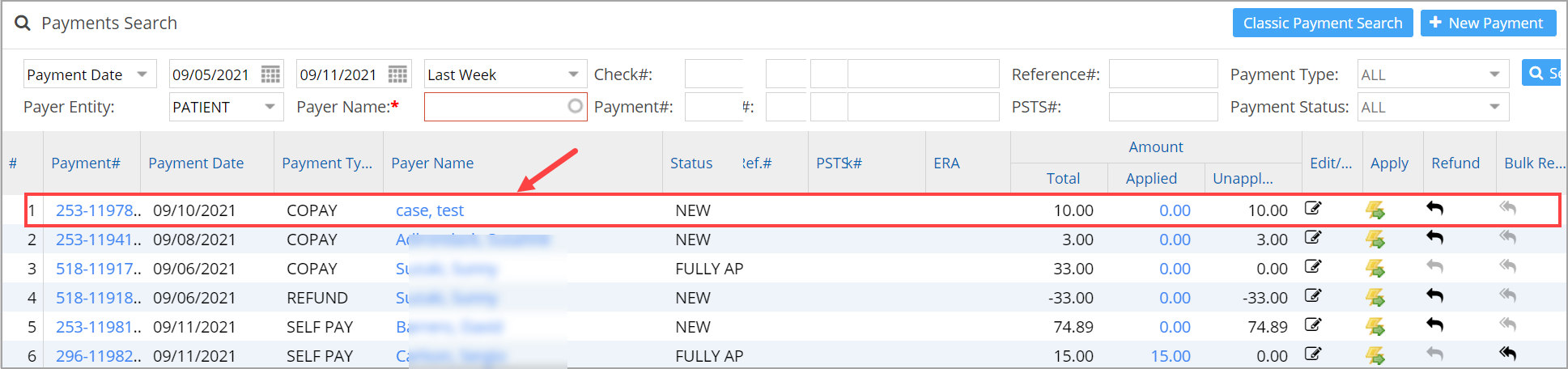 1. From the Payment Search screen, use appropriate search parameters to search for the payment.