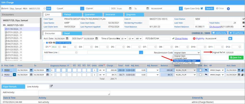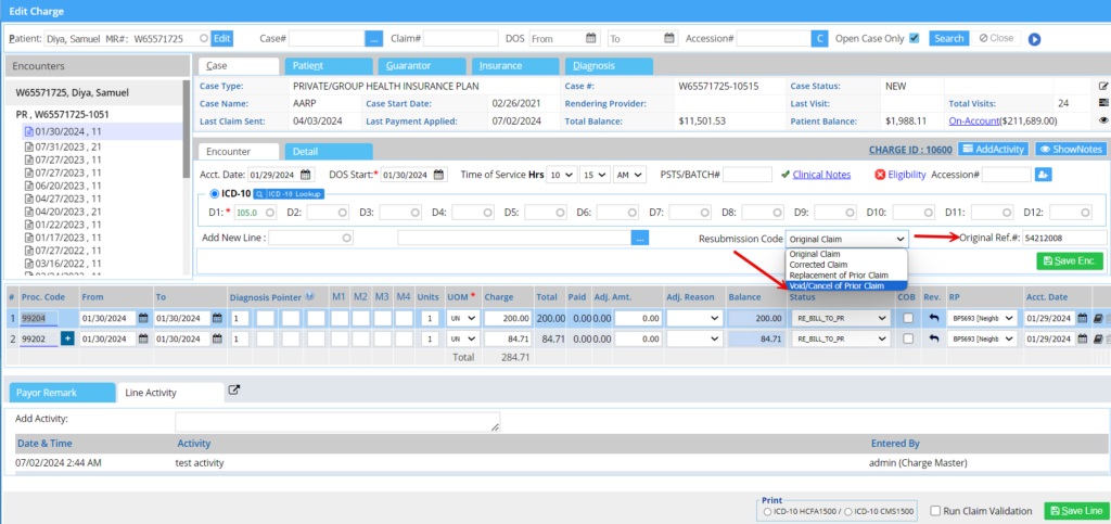 2. In the Resubmission Code field, select Void/Cancel or Prior Claim.