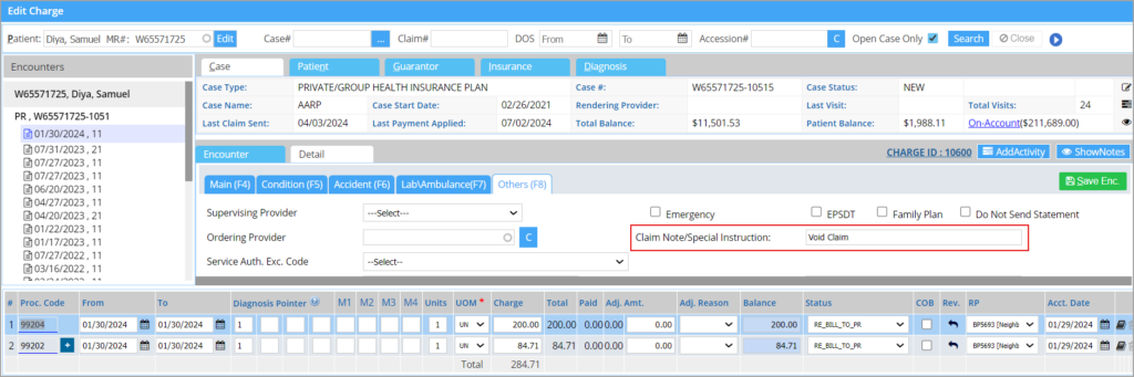 4. Go to Details tab ->Others, in the Claim Note/Special Instruction field, provide the text as Void Claim.