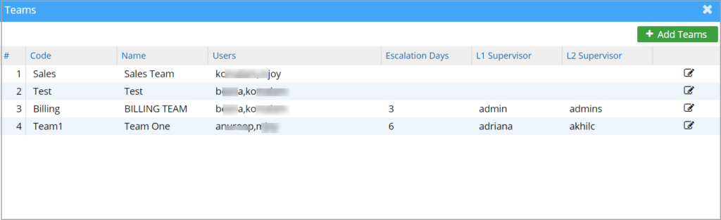 * Note: Functionality related to the fields Esc. Days, L1 supervisor, and L2 supervisor will be implemented in a future release. These fields are currently non-functional.